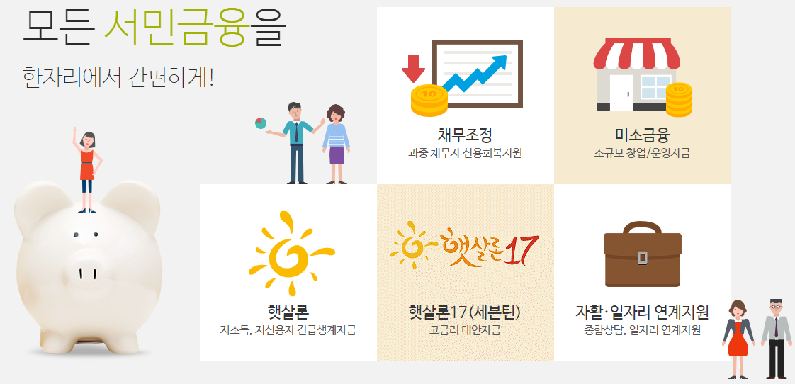 서민금융 통합지원센터에서는 햇살론17이라는 정부지원 서민대출을 시행하고 있습니다.