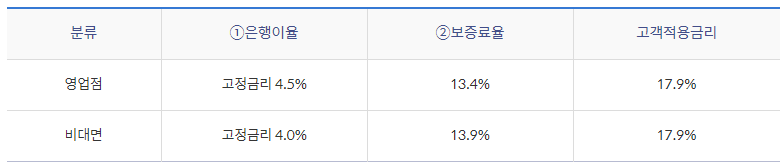 신한은행 햇살론17은 신한은행 수취이율 4.5%, 국민행복기금 보증료율 13.4%가 적용되어 연간 17.9%의 금리가 적용됩니다.